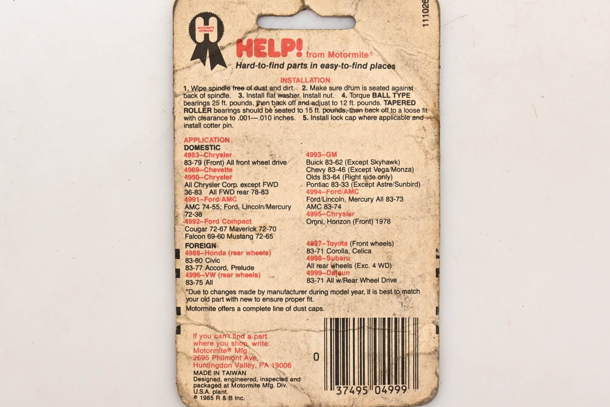 Motormite 04999, 111026 Help! 71-83 Datsun Spindle Nut Lock Kit NOS