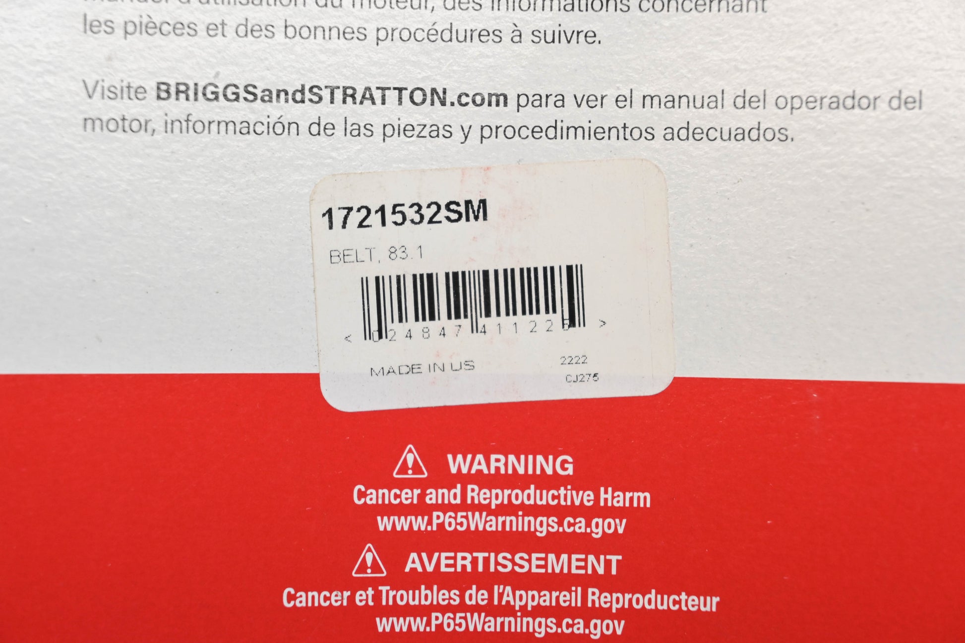 New OEM Briggs & Stratton 1721532SM, 1721532 1/2" x 83" Cog V-Belt NOS