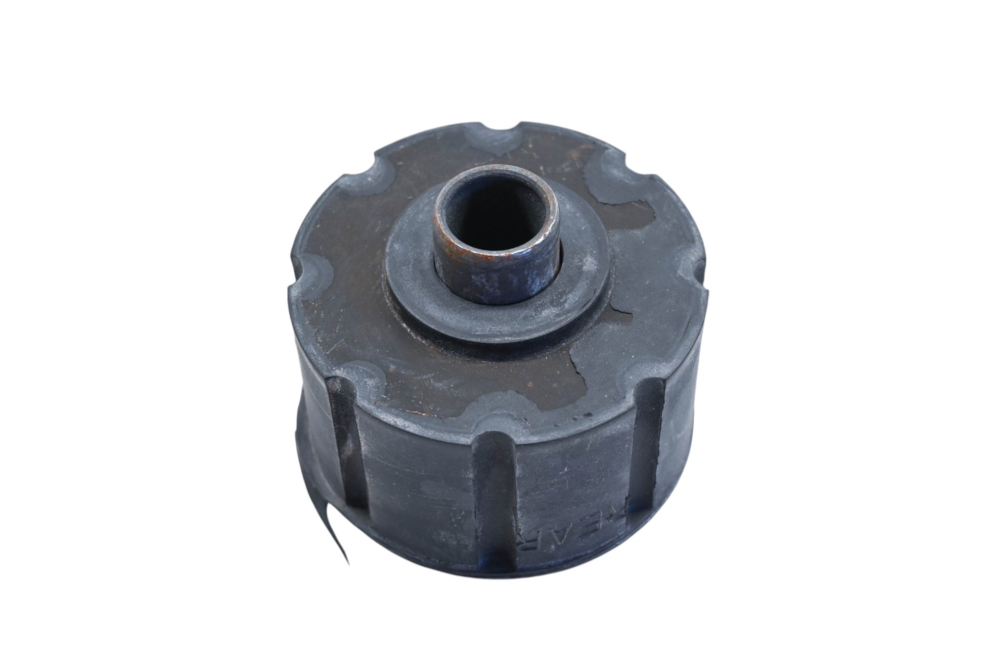 Rear Upper Cab Mount Insulator is new and in good condition, not in original packaging. Shows signs of shelf wear. Rust present.