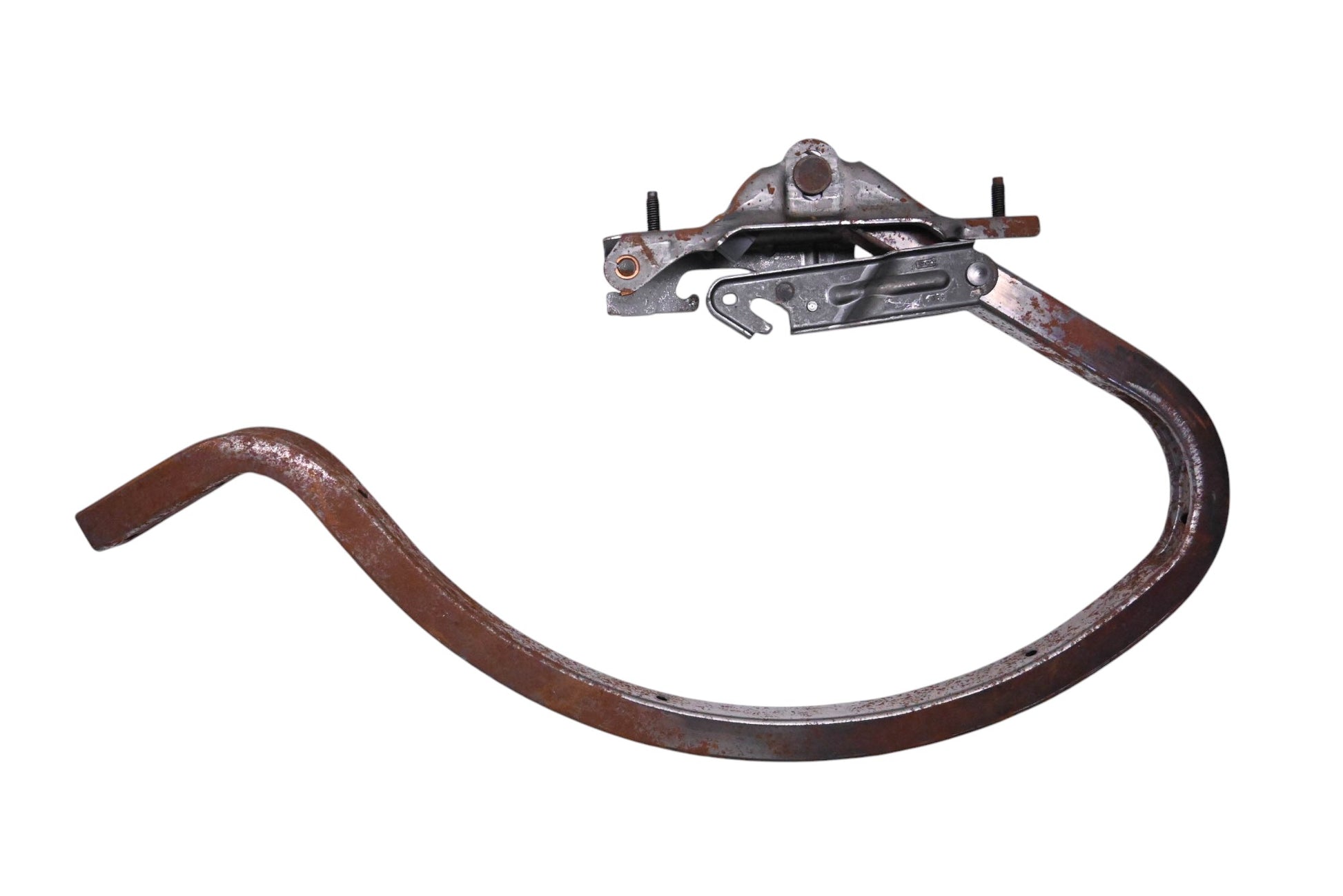 Right Side Rear Trunk Hinge Assembly is new and in good condition, not in original packaging. Part shows some signs of shelf-wear; rust present in some places.