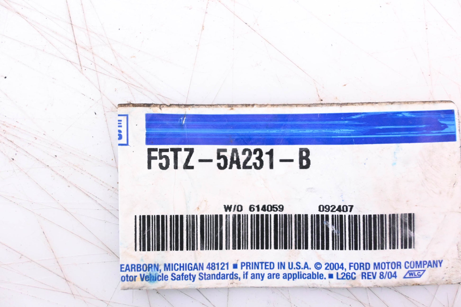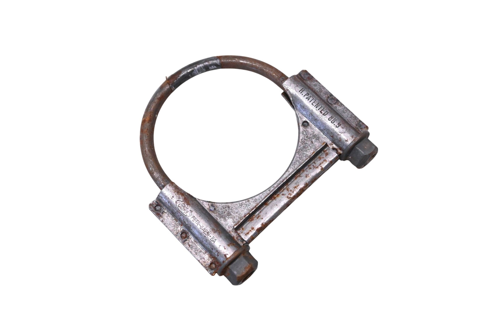 Exhaust Clamp Assembly is new and in good condition, not in original packaging. Part shows some signs of shelf-wear; some rust and sticker residue present.