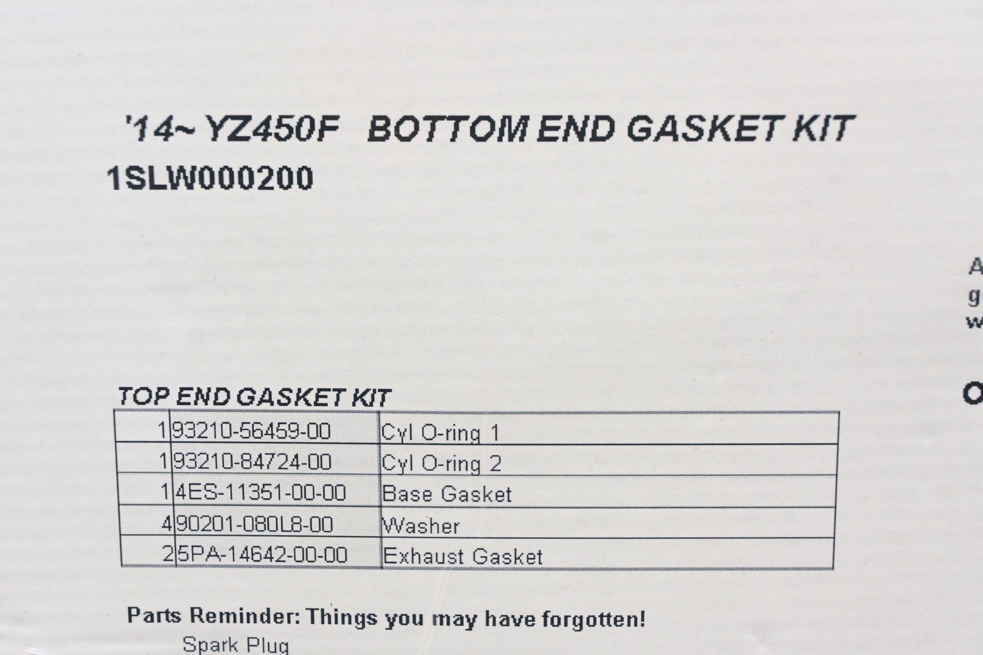 New OEM Yamaha 1SL-W0002-00-00 Bottom End Gasket Kit NOS
