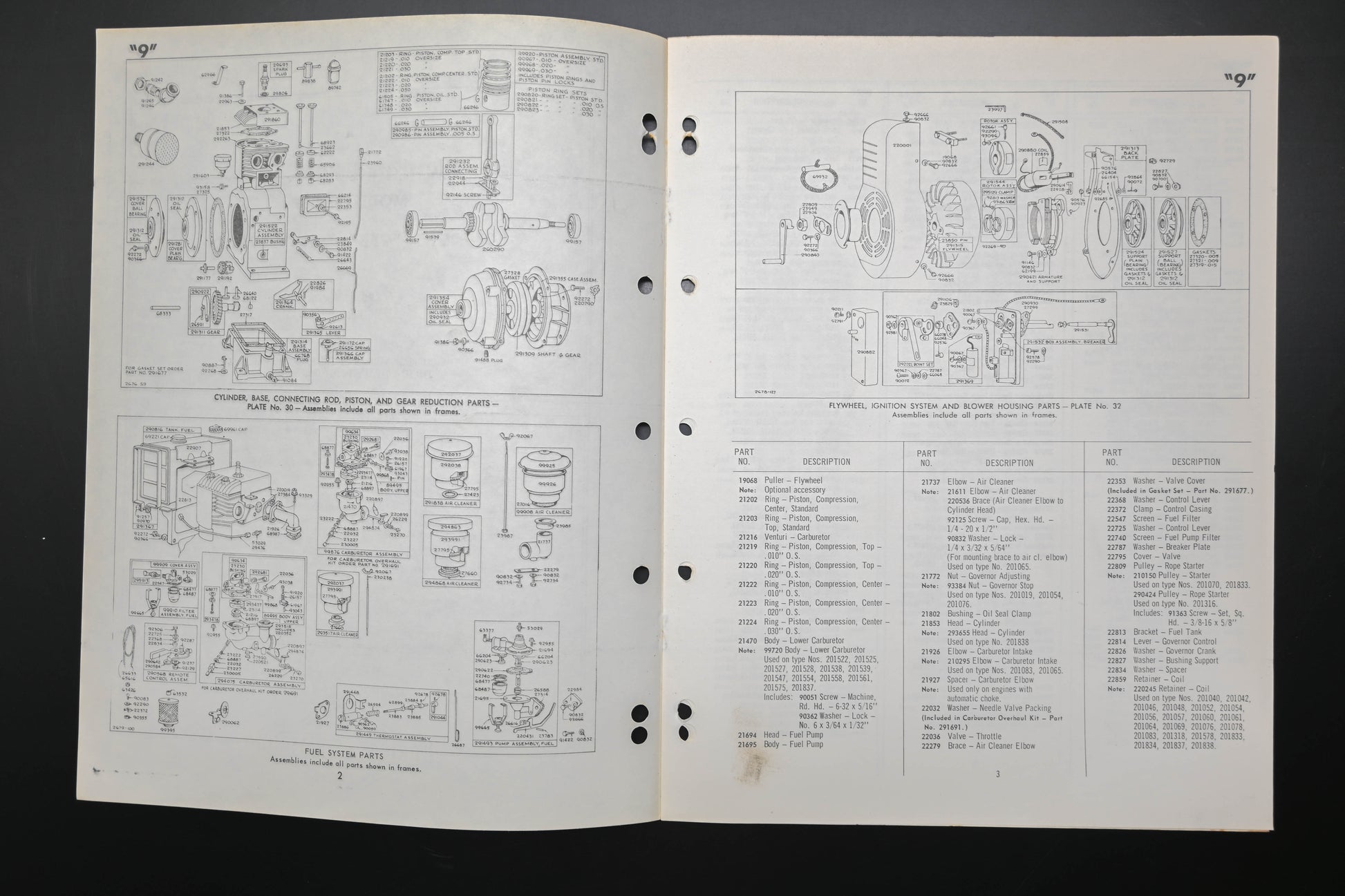Model Series 9 9B 9F 9R Parts List is used and in good condition, not in original packaging. Shows signs of wear from use. Binding staples rusted & pages are discolored from age. Small rust stains and fingerprints present on both covers, fingerprints present on a few pages.