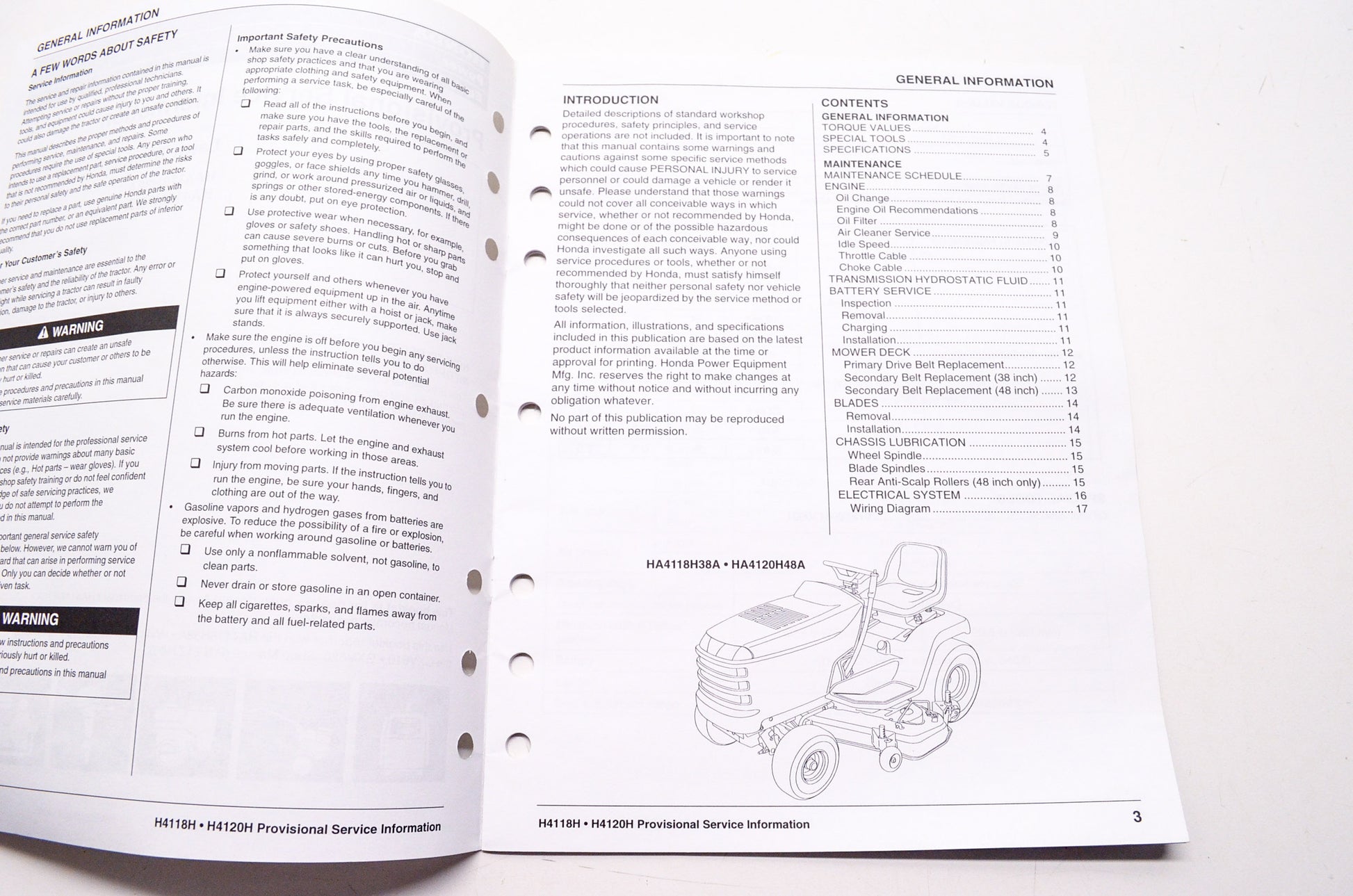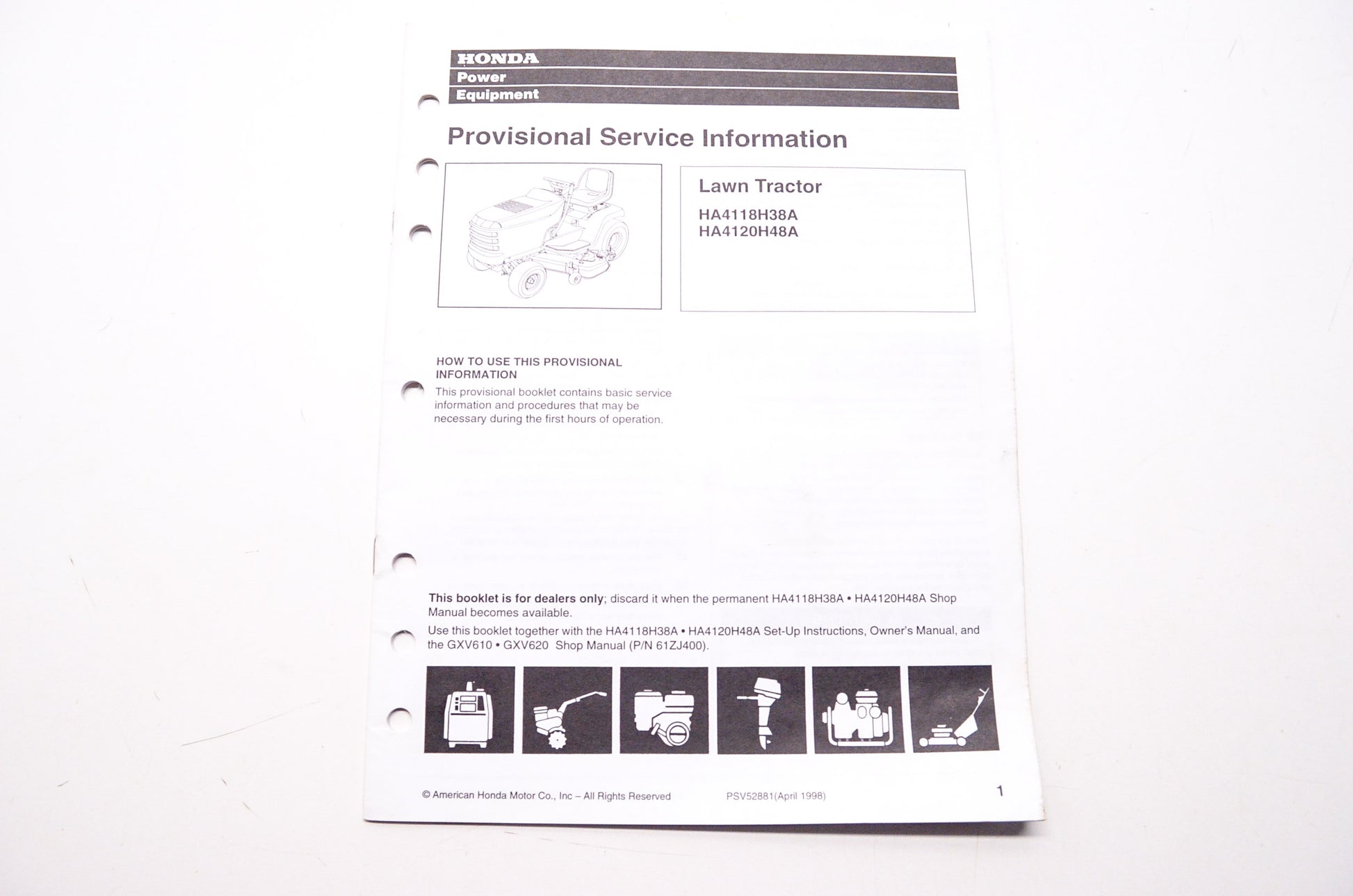OEM Honda PSV52881 Provisional Service Information Lawn Tractor HA4118H38A HA412
