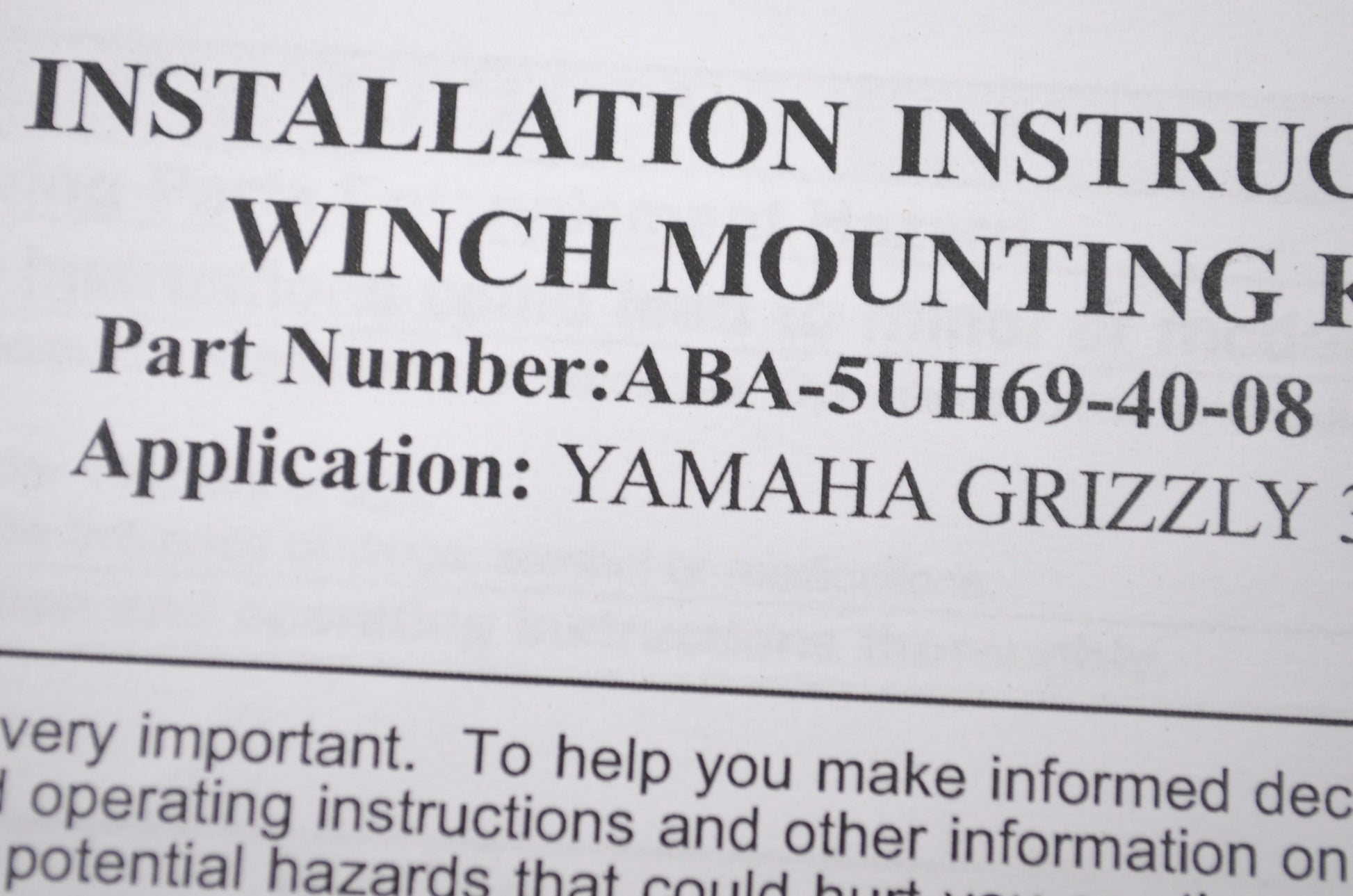 OEM Yamaha ABA-5UH69-40-08 Winch Mount Kit NOS