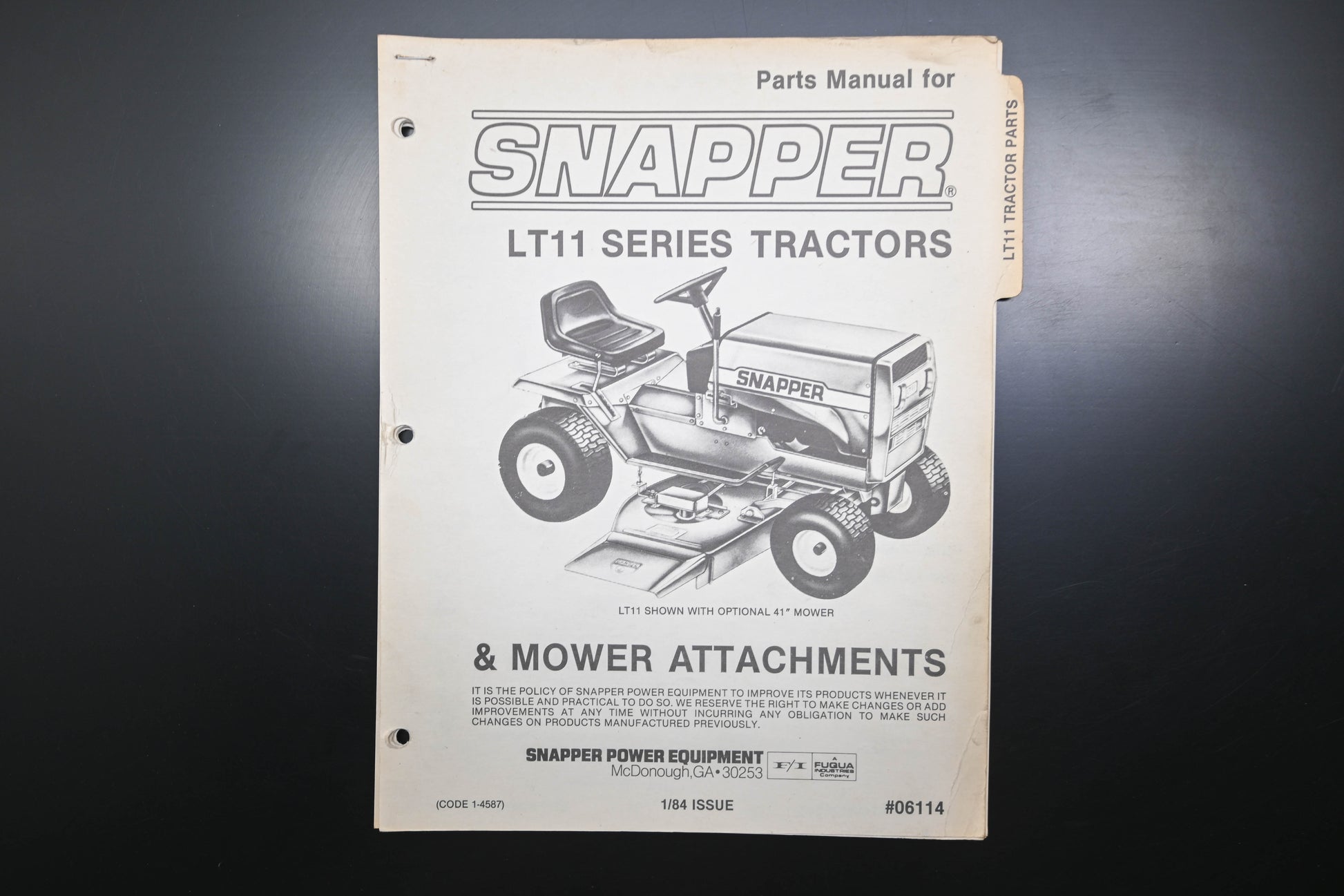 Snapper 06114, 6114 LT11 Tractor & Attachments Parts Manual