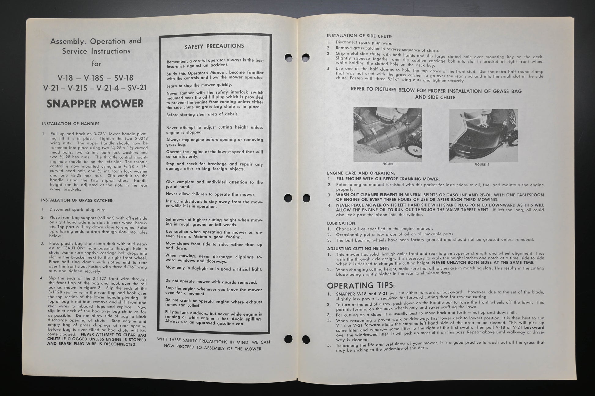 Snapper 1-1792 V-18 V-21 Series Lawn Mower Operator's Manual